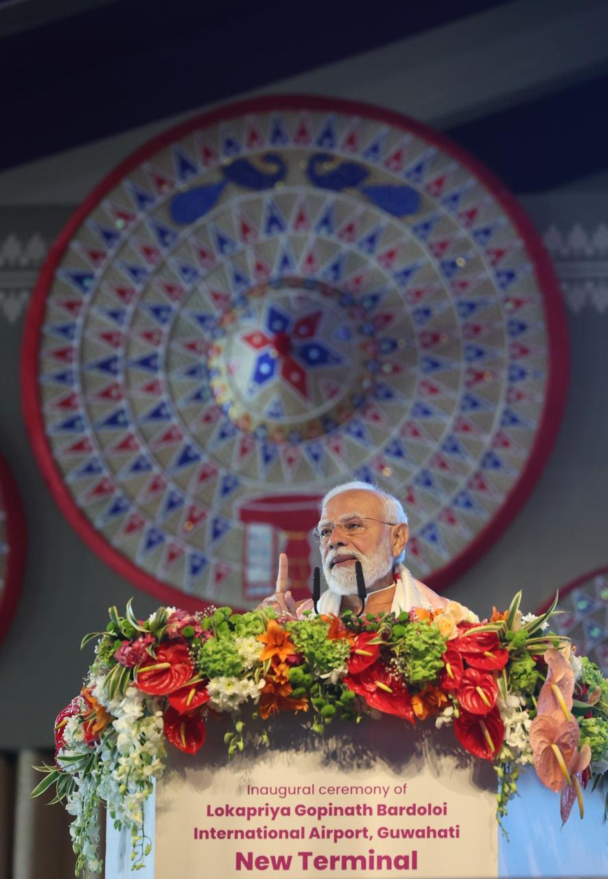 গুৱাহাটী,২০ ডিচেম্বৰ : অসমৰ সংযোগ, অৰ্থনৈতিক সম্প্ৰসাৰণ আৰু বিশ্বজোৰা সংযোগৰ ক্ষেত্ৰত এক পৰিৱৰ্তনশীল মাইলৰ খুঁটি হিচাবে চিহ্নিত কৰি প্ৰধানমন্ত্ৰী নৰেন্দ্ৰ মোদীয়ে আজি গুৱাহাটীত লোকপ্ৰিয় গোপীনাথ বৰদলৈ আন্তঃৰাষ্ট্ৰীয় বিমানবন্দৰৰ নতুন টাৰ্মিনেল ভৱন উদ্বোধন কৰে। এই উপলক্ষ্যে আয়োজিত সভাত ভাষণ আগবঢ়াই মোদীয়ে কয় যে আজি অসম তথা উত্তৰ-পূৰ্বাঞ্চলত উন্নয়ন তথা প্ৰগতিৰ উৎসৱ চলিছে। তেওঁ আলোকপাত কৰে যে যেতিয়া প্ৰগতিৰ পোহৰ মানুহৰ ওচৰ পায়গৈ তেতিয়া জীৱনৰ প্ৰতিটো পথেই নতুন উচ্চতা স্পৰ্শ কৰিবলৈ আৰম্ভ কৰে। প্ৰধানমন্ত্ৰীয়ে লগতে মন্তব্য কৰে যে অসমৰ ভূমিৰ প্ৰতি তেওঁৰ গভীৰ মোহ আছে, ইয়াৰ জনসাধাৰণৰ মৰম , বিশেষকৈ অসম তথা উত্তৰ-পূৰ্বাঞ্চলৰ মাতৃ-ভগ্নীসকলৰ মৰমৰ উষ্ণতাই তেওঁক নিৰন্তৰ অনুপ্ৰাণিত কৰাৰ লগতে অঞ্চলটোৰ উন্নয়নৰ বাবে সামূহিক সংকল্পক শক্তিশালী কৰি তোলে। তেওঁ আলোকপাত কৰে যে আজি পুনৰবাৰ অসমৰ উন্নয়নত এক নতুন অধ্যায় সংযোজন কৰা হৈছে। ভাৰত ৰত্ন ভূপেন হাজৰিকাৰ এটি গীতৰ কলি উল্লেখ কৰি মোদীয়ে কয় যে ইয়াৰ অৰ্থ হৈছে মহান ব্ৰহ্মপুত্ৰ নদীৰ পাৰ জিলিকি উঠিব, অন্ধকাৰৰ প্ৰতিখন দেৱাল ভাঙি যাব আৰু এয়া নিশ্চয় হ’ব, কাৰণ ই দেশৰ সংকল্প আৰু গম্ভীৰ প্ৰতিজ্ঞা। ভূপেন হাজৰিকাৰ গীতৰ কলিবোৰ কেৱল গীত নহয় বৰঞ্চ অসমক ভালপোৱা প্ৰতিগৰাকী মহান আত্মাৰ গম্ভীৰ সংকল্প । আজি এই সংকল্প পূৰণ হোৱা বুলি মন্তব্য কৰি মোদীয়ে কয় যে ব্ৰহ্মপুত্ৰৰ প্ৰচণ্ড সোঁত যেনেকৈ কেতিয়াও বন্ধ নহয়, ঠিক তেনেদৰে কেন্দ্ৰ আৰু ৰাজ্যত তেওঁলোকৰ চৰকাৰৰ অধীনত চলি থকা অসমৰ উন্নয়নৰ ধাৰাও নিৰৱচ্ছিন্নভাৱে অব্যাহত থাকিব। তেওঁ লোকপ্ৰিয় গোপীনাথ বৰদলৈ বিমানবন্দৰত নতুন টাৰ্মিনেল উদ্বোধনেই এই প্ৰতিশ্ৰুতিৰ প্ৰমাণ বুলি উল্লেখ কৰে। এই নতুন টাৰ্মিনেল ভৱনৰ বাবে অসমবাসী আৰু দেশলৈ তেওঁ অভিনন্দন জ্ঞাপন কৰে। প্ৰধানমন্ত্ৰীয়ে লগতে মন্তব্য কৰে যে কিছু সময়ৰ পূৰ্বে তেওঁ অসমৰ প্ৰথম মুখ্যমন্ত্ৰী তথা ৰাজ্যৰ বাবে গৌৰৱৰ উৎস গোপীনাথ বৰদলৈৰ প্ৰতিমূৰ্তি উন্মোচন কৰাৰ সৌভাগ্য লভিছিল। তেওঁ কয় যে বৰদলৈয়ে অসমৰ পৰিচয়, ভৱিষ্যত, স্বাৰ্থৰ ক্ষেত্ৰত কেতিয়াও আপোচ কৰা নাছিল। তেওঁৰ প্ৰতিমূৰ্তিয়ে ভৱিষ্যত প্ৰজন্মক অনুপ্ৰাণিত কৰি থাকিব আৰু সকলোৰে মাজত অসমৰ প্ৰতি গভীৰ গৌৰৱবোধ জগাই তুলিব। “আধুনিক বিমানবন্দৰৰ সুবিধা আৰু উন্নত সংযোগৰ আন্তঃগাঁথনিয়ে যিকোনো ৰাজ্যৰ বাবে নতুন সম্ভাৱনা তথা সুযোগৰ দুৱাৰ হিচাপে কাম কৰে, জনসাধাৰণৰ মাজত বৃদ্ধি পোৱা আত্মবিশ্বাস আৰু বিশ্বাসৰ স্তম্ভ হিচাপে থিয় দিয়ে।” – প্ৰধানমন্ত্ৰীয়ে কয়। তেওঁ মন্তব্য কৰে যে যেতিয়া মানুহে অসমত ঘাইপথ আৰু বিমানবন্দৰ নিৰ্মাণৰ সাক্ষী হয় তেতিয়া তেওঁলোকে 